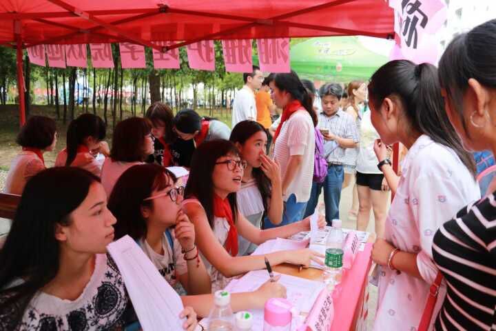 日头越来越烈的时候,人也渐渐多了起来,新生们也陆续地到来。签到,咨询助学,领取资料袋,合影留念,了解团学会,一切都井然有序,虽然不停歇的工作让人有些疲惫,但每个志愿者工作者都努力尽力的做着。或许是因为,新生们那稚嫩的脸蛋,腼腆、兴奋,一些跃跃欲试,又一些望而却步,看到他们,仿佛看到了昨日的自己。离开家门,开始新的旅途,内心必然有对未来的恐惧,我们只希望自己能给他们带去一点点鼓励,一丝丝宽慰。