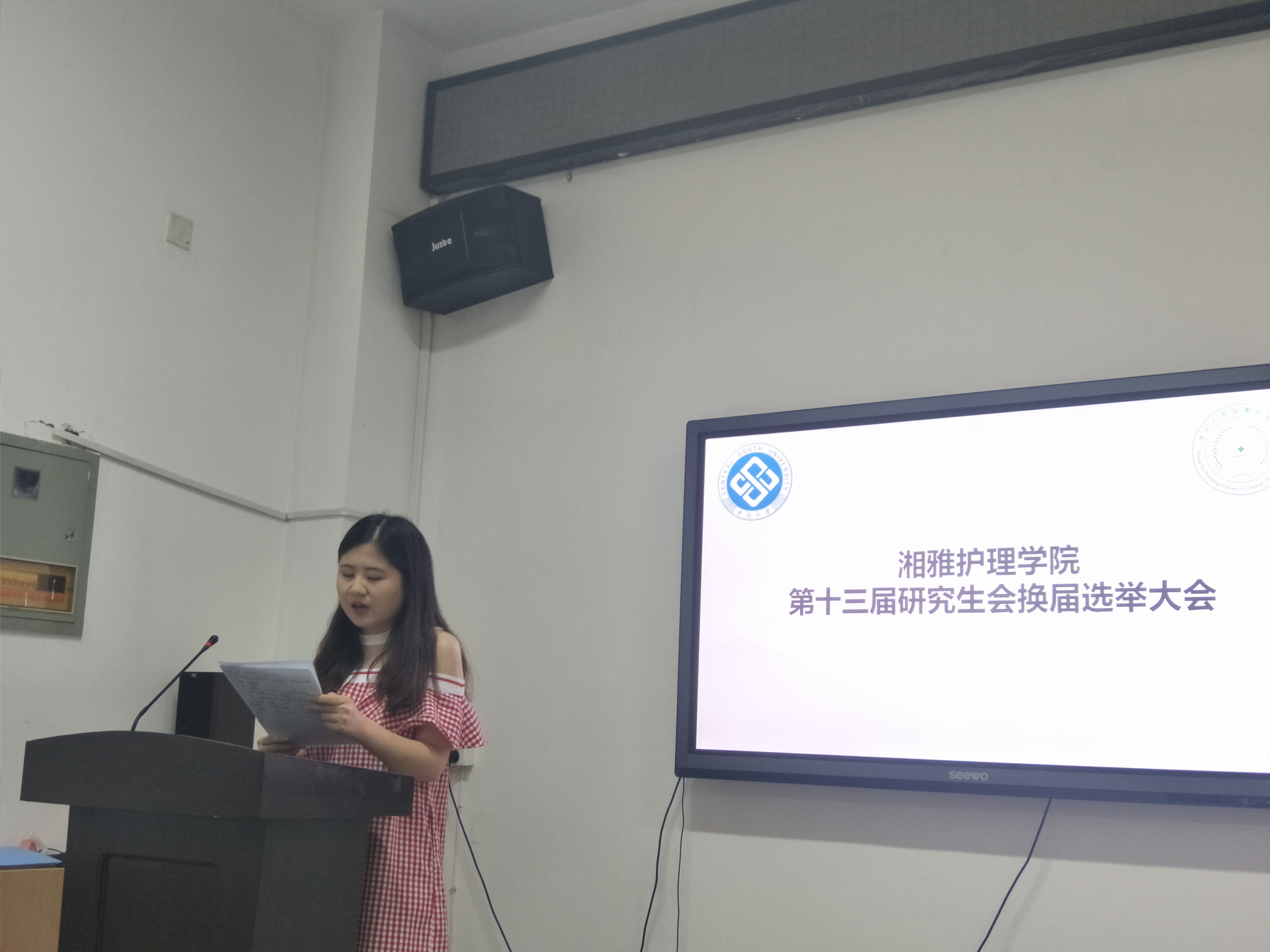换届选举大会以激情洋溢的PPT展示拉开帷幕,前任研究生会主席孟婧婧上台致辞,回顾了研学会过去一年所做出的成就,并热情欢迎各位竞选同学的到来,希望大家能够勇敢地展现自己。随后由各个部门部长分别介绍各部门的工作流程,上一届主席团成员认为热情和态度是我们开展的工作的重要条件,鼓励我们发挥自己的特长,展示自己的能力。参加竞选的同学们依次上台进行自我展示,同学们信心十足,每位竞选者都抒发了自己对于研学会的憧憬、过去在本科期间所做的优异成绩以及对所选职务的规划和展望。