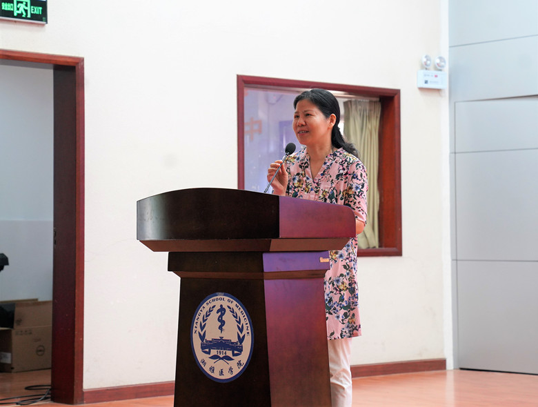 颁奖之后,学院2019级硕士研究生谢莹作为获奖员工代表发言。她表达了对学院领导、老师、中信湘雅生殖与遗传医院领导,特别是卢光琇教授的感谢,并表示之后会以荣誉为新的起点,自我鞭策,不骄不躁,以优异的成绩报答学院、报答学校、回报社会。