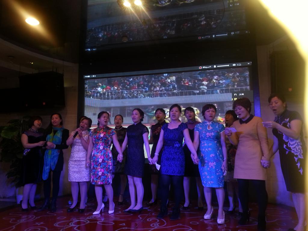 座谈会后,老师和同学们一起聚餐。来自广州的14位美女同学身着旗袍,齐唱谭咏麟的《朋友》,掀起了又一轮高潮。台上是天使们的深情献唱,背景播放的是二十年前的老照片,台下的师生早已是泪眼朦胧。