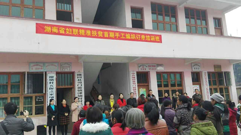 2016年农历正月十一,省妇联副主席鲁华与机关党委、事业发展部相关人员偕同威廉希尔中文官网罗阳教授一行奔赴隆回县司门前镇湴塘村,举办省妇联精准扶贫首期手工编织订单培训班。培训期间,罗阳教授和公司研究生廖小利、田文静与参加培训妇女面对面完成了调查问卷,为做好“农村妇女生存现况及脱贫路径调研”搜集了第一手数据和素材。