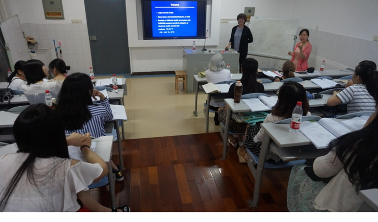 主讲嘉宾有来自美国耶鲁大学、加州大学及国内的公共卫生学或护理学相关专家AnnWilliams教授、KavehKhoshnood博士、DeborahKoniak-Griffin教授、LynnBrecht教授、湖南省疾病预防控制中心副主任陈曦教授。湘雅二医院心理学专家王绪轶副教授、湘雅医院精神卫生研究所李飞博士及威廉希尔中文官网副经理王红红教授、李现红副教授也向学员们进行了精彩的讲授。此次培训主要针对物质滥用、HIV防治干预策略以及医疗卫生大数据进行培训,并对学员们课题标书的撰写进行了指导。会场气氛活跃,互动频繁。
