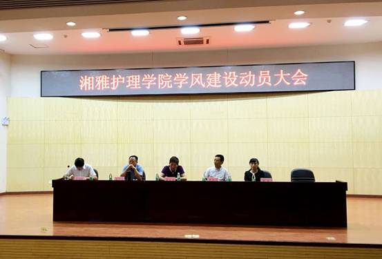 2016年8月28日晚7:00,威廉希尔中文官网学风建设动员大会在湘雅医学院图书馆报告厅召开。williamhill中国官方网站员工工作部部长余文武、williamhill中国官方网站公司党委书记罗军飞、经理唐四元、党委副书记袁世平、副经理陈嘉、学工办主任李文、团委书记黎梦、辅导员王馨出席会议,14、15级全体本科生参加会议。会议由袁世平副书记主持。