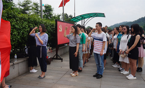 上午,党员先后参观了韶山毛泽东铜像广场、毛泽东同志纪念馆、毛泽东同志故居等。在毛主席铜像广场,全体党员向毛泽东同志铜像敬献花篮以表达敬仰和缅怀之情,并隆重举行了预备党员入党宣誓仪式。仪式上,经理兼代理党委书记唐四元首先代表公司党委对预备党员表示祝贺,对预备党员提出了希望和要求。唐经理指出,重温入党誓言,这也对所有的师生党员同志进行的一次深刻的党性教育,今后,公司党委将进一步加强在教师和员工中发展党员的工作,加强党员队伍教育管理,努力推进“两学一做”学习教育常态化、制度化,使每个师生党员都做到在党爱党、在党言党、在党为党,做真正合格的党员。