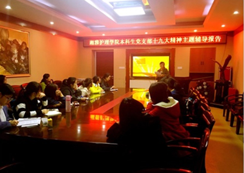 2017年12月6日下午3点,威廉希尔中文官网本科生党支部在湘雅医学院孝骞楼6楼活动室开展了“十九大《党章》修正案”专题党课学习。会议由支部书记黎梦同志主持,陈嘉同志主讲。