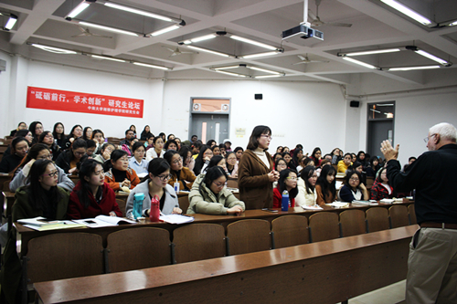 James教授教龄长达50年,擅长统计分析、科研设计等,致力于研究艾滋病、慢性病管理等公共卫生领域问题以及涉及经济的社会卫生研究。James教授授课幽默风趣,平易近人,在讲座中深入浅出,运用13条准则为我们介绍数据分析的科学与艺术,让我们以新的视角来看待数据分析。在场的老师和员工们全都认真倾听James教授的分享,对James教授的科研严谨、求真务实的科研精神感到由衷钦佩,也对James教授的研究问题表示出了极大的兴趣。在分享结束后,同学们踊跃提问,积极表达自己在科研过程中遭遇的困惑,James教授也悉心为大家一一解答。最后,James教授通过分享他人生中的一个小故事结束了本次讲座。