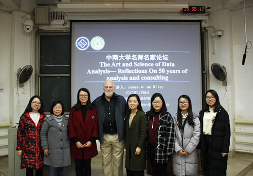 2017年12月8日,公司“williamhill中国官方网站名师名家论坛”系列学术讲座在湘雅医学院新校区福庆楼T208教室顺利召开。本次讲座特别邀请美国加州大学旧金山分校卫生政策研究所客座教授James Allen Wiley,主题为“The Art and Science of Data Analysis-Reflections on 50 years of analyzing and consulting”。讲座由威廉希尔中文官网郭佳副教授主持,本次学术讲座吸引了众多师生,许多职工也慕名而来,会场内座无虚席。