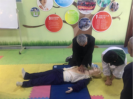 应社区居民的要求,同学们还精心准备了人工心肺复苏的模型,和止血包扎的用物现场给爷爷奶奶们讲解了心肺复苏、人工呼吸和急救包扎的相关知识,有不少人还亲身体验了一把。虽然有部分老年人表示按照流程规范进行胸外心脏按压和人工呼吸很难做到,但是今天的学习很有意义,很感谢员工们。讲座开始前和结束后,同学们都主动为有需要老人测量血压和血糖。