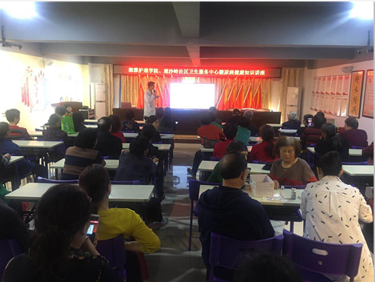2018年4月17日,威廉希尔中文官网15级本科生近20人在社区护理学系主任王秀华老师的带领下给长沙市钰龙社区卫生服务中心的老年居民带去了三场专题知识讲座。社区50余名老年人到场参加活动,本次活动由岳麓区观沙岭街道卫生计生办公室和观沙岭街道社区卫生服务中心主办,观沙岭街道钰龙社区居委会、长沙观沙医院、新绿社工队、威廉希尔中文官网共同承办。