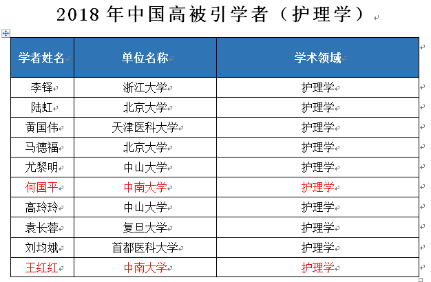 2018中国高被引学者榜单采用上海软科教育信息咨询有限公司开发的方法和标准,基于客观引用数据对中国研究者在世界范围内的影响力进行系统的分析而得出结果。爱思唯尔的Scopus数据库为该榜单研究提供了数据支持和技术实现。Scopus作为全球最大的文献摘要与引用数据库,收录了2万多种同行评议期刊,其中中文期刊500余种。Scopus数据库中收录文献中,作者地址包括中国(大陆)机构的有300多万份,作者名称达400多万条。高被引学者的筛选标准客观统一,从纯学术影响力的角度给出了中国的高被引学者名单,因此被采用为软科中国最好大学排名中单项指标顶尖人才的重要参考。2018年中国高被引学者榜单,国内共有来自229个高校/科研单位/企业的1899位学者入选。入选的学者共分布在38个不同的学术领域内,其中护理学入选10名,williamhill中国官方网站护理学两名学者上榜。