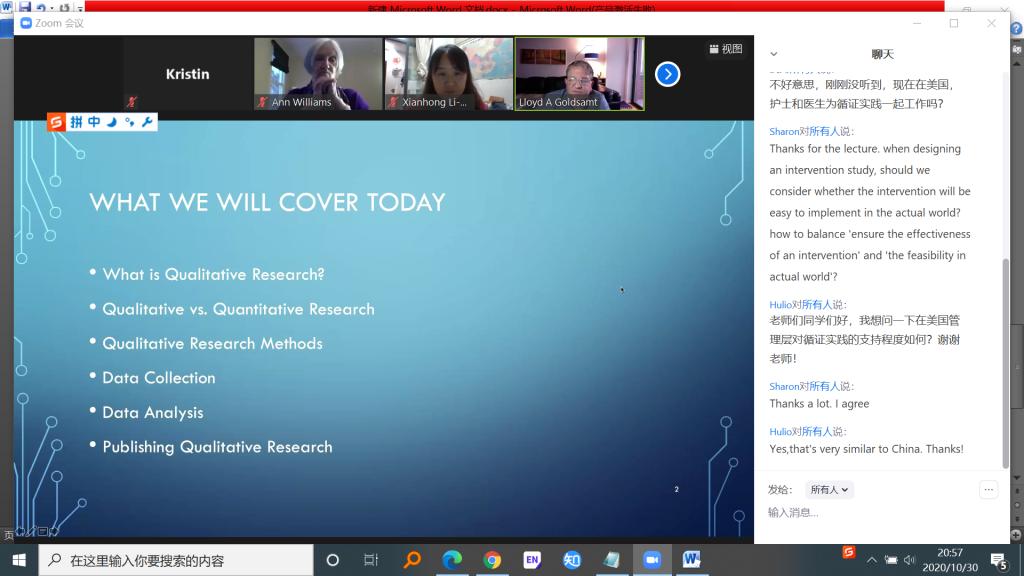 10月30日晚上8点,“砥砺前行,学术有道”2020年秋季学术讲座以ZOOM线上直播的形式顺利举行。此次会议由耶鲁大学Ann Bartley Willams教授和纽约大学Lloyd A. Goldsamt博士主讲,威廉希尔中文官网副经理李现红教授主持。