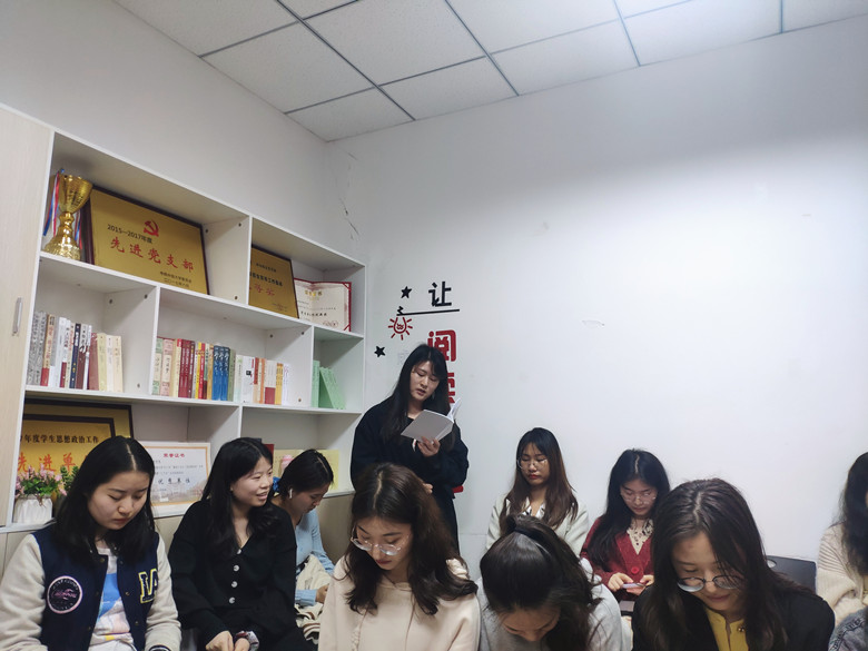 会议第二项议程是支部讨论接收预备党员。首先由孟令琦、陈曾煜、黄蓉、罗晓菲四位同志依次陈述对中国共产党的认识、入党动机以及自身表现等。入党介绍人分别汇报对发展对象的考察意见,并对其能否入党表明意见。随后,组织委员庞雪囡向大会报告四名同志政治审查、支委会审查结果。最后由参会正式党员无记名投票表决。会议认为,四位发展对象在考察期间以高标准要求自己,加强党章党规理论学习,主动撰写思想汇报,不断提升党性觉悟;认真践行“为人民服务”的宗旨;学习和科研中不断探索、创新,精益求精;生活作风良好,团结群众,符合党员条件。经无记名投票票决,支部正式党员一致同意接收他们成为预备党员。
