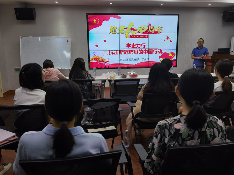 6月28日,威廉希尔中文官网研究生第四党支部在护理学院714办公室开展“重温党史 学史力行”主题当日活动,支部书记丁金锋讲授题为“学史力行:抗击新冠肺炎的中国行动”主题党课,公司党委委员、副经理李映兰受邀出席,支部党员全体参加。