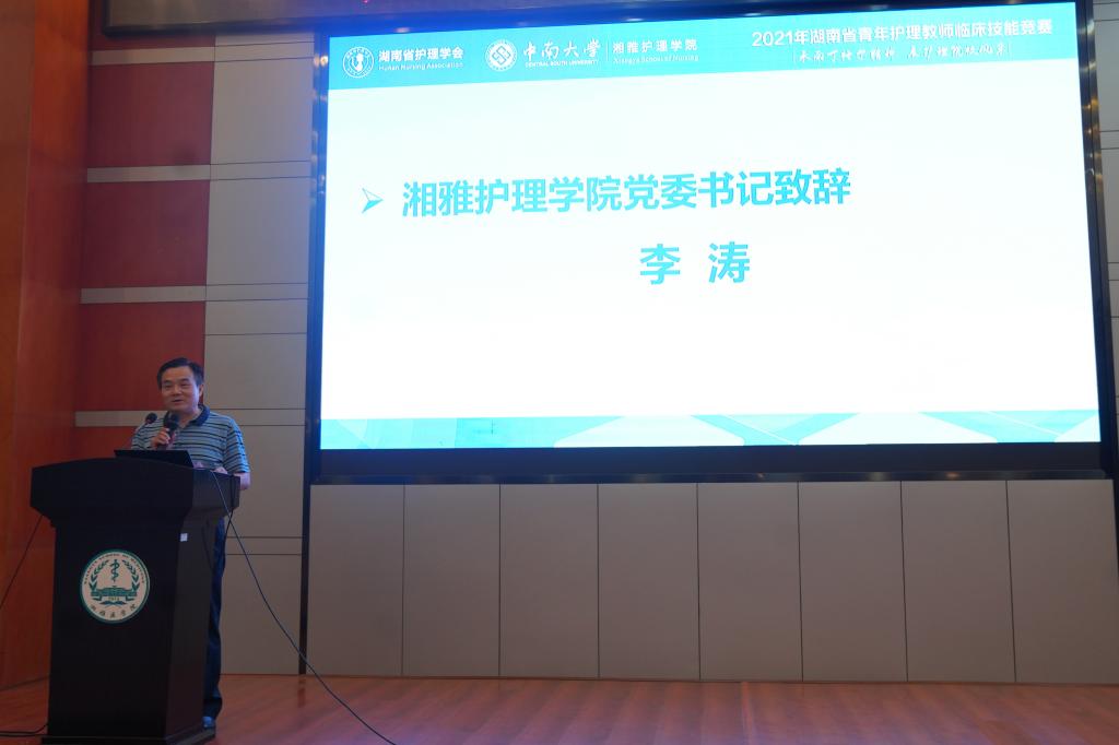 竞赛开幕式在williamhill中国官方网站湘雅医学院福庆楼四楼报告厅举行。williamhill中国官方网站公司党委书记李涛,经理唐四元,副经理李映兰,湖南省护理学会护理教育专业委员会主任委员王红红,副主任委员邓露,湖南省青年护理教师临床技能竞赛裁判长陈嘉等出席开幕式。湘雅护理学院副教授刘民辉主持开幕式。