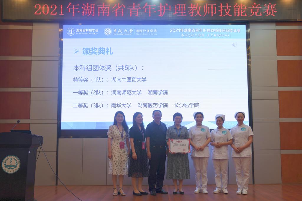 本次竞赛内容包括有心电监护,肌内注射,静脉输液三个项目。来自湖南省内6个本科院校,4个高职院校的30位护理专业老师参赛。他们凭借着规范熟练的操作,贴心的人文关怀与良好的综合素质向大家展示了扎实的理论基础和娴熟的临床护理实践技能。最后,本科组团体奖中湖南中医药大学获得特等奖,湖南师范大学、湘南学院获得一等奖,南华大学、湖南医药学院、长沙医学院获得二等奖。高职高专组团体奖中湖南环境生物职业技术学院获得特等奖,湘潭医卫职业技术学院、长沙卫生职业学院获得一等奖,益阳医学高等专科集团获得二等奖。本科组单项奖中,湖南中医药大学袁群获心电监护单项奖,湖南中医药大学伍永慧获肌内注射单项奖,湖南师范大学吴彦获静脉输液单项奖;高职高专组单项奖中,湖南环境生物职业技术学院李琅获心电监护单项奖,长沙卫生职业学院石秀兰获肌内注射单项奖,湖南环境生物职业技术学院肖东玲获静脉输液单项奖。湖南中医药大学的彭丽丽、霍依和湖南环境生物职业技术学院的雷巍娥、罗明慧荣获优秀指导教师奖。