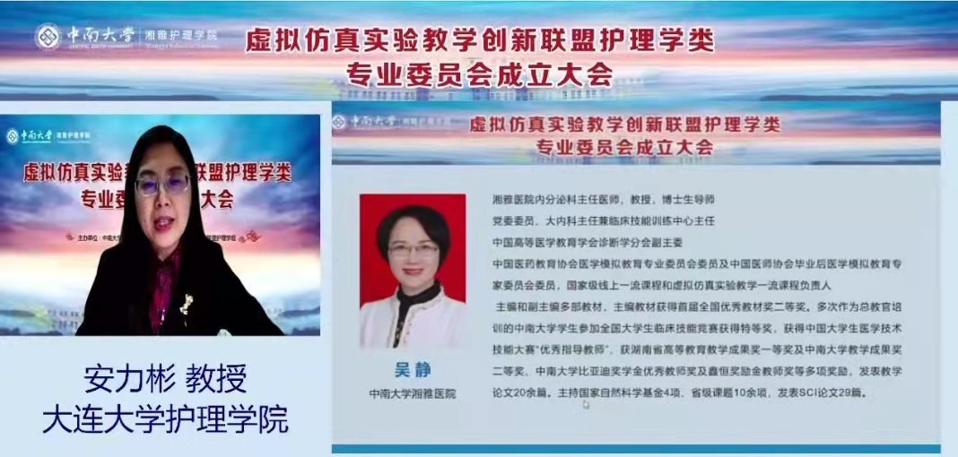 10月24日,虚拟仿真实验教学创新联盟护理学类专业工作委员会成立大会采取线上会议的形式举行。威廉希尔中文官网唐四元经理担任虚拟仿真实验教学创新联盟护理学类专业委员会主任委员,北京大学护理学院孙宏玉教授、大连大学护理学院安力彬教授、南方医科大学护理学院张立力教授、湖南中医药大学罗尧岳教授担任虚拟仿真实验教学创新联盟护理学类专业委员会副主任委员。来自全国91所高校的近100位委员和2位企业委员、800余位同道在线观看了线上直播。