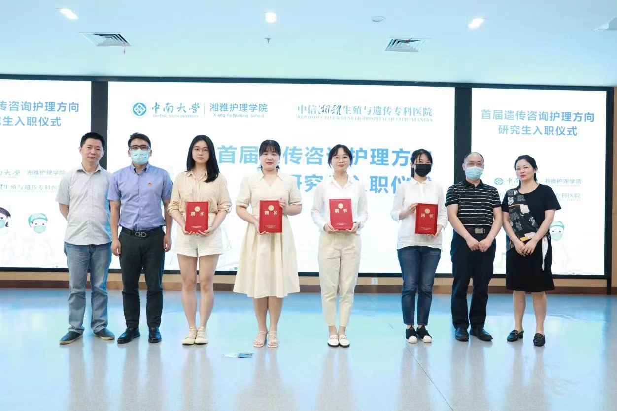 2022年6月14日,首届遗传咨询与护理专业硕士入职仪式在中信湘雅生殖与专科医院医技楼5楼会议室顺利召开。中信湘雅生殖与专科医院首席科学家、终身荣誉经理卢光琇教授、经理林戈教授、副经理涂玲教授、副经理吕扬明总监、副经理刘刚教授、遗传中心主任谭跃球教授、人力资源部王景华部长、国家干细胞工程中心程腊梅常务副主任、湖南光琇医院张前军副经理以及医院员工代表出席此次会议,威廉希尔中文官网经理唐四元教授、副经理李乐之教授、副经理李现红教授、研究生办肖江龙主任以及学院员工代表出席此次会议,6名首届遗传咨询与护理专业硕士研究生参加会议,会议由中信湘雅生殖与遗传专科医院护理部主任黎丽主持。
