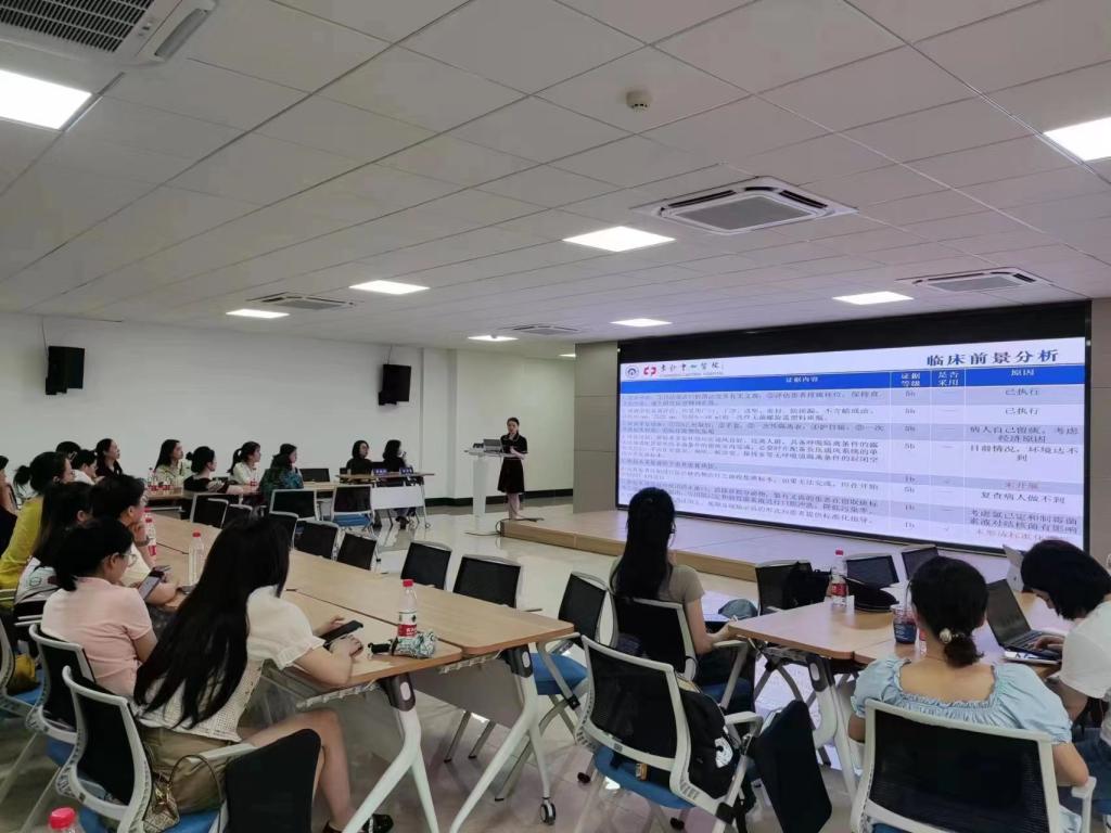 随后,下午的专题研讨会由吴艳妮博士、陈琦蓉副教授、黄晓婷副教授和陈佳睿博士主持。湖南省肿瘤医院副主任护师林琴和长沙市中心医院副主任护师周兰分别就“成人肿瘤病房中非药物措施预防PICC相关血栓”和“肺结核患者规范化痰标本采集的证据临床转化”进行主题汇报。现场其他参会老师就证据应用中的潜在障碍、审查方案的制定等问题进行积极深入的主题讨论。最后,吴艳妮博士、陈琦蓉副教授以及陈佳睿博士、黄晓婷副教授对大家发言进行总结,并再次向大家强调JBI循证证据转化的工作重点。