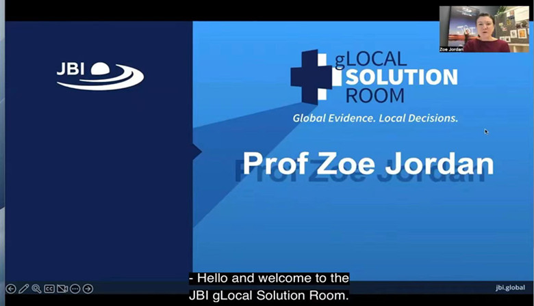 首先,Zoe Jordan 教授致欢迎辞并向参与者介绍了JBI GLOCAL SOLUTION ROOM系列活动的来源及重要意义。她表示该系列活动为不同国家和地区的卫生保健人员交流和学习循证卫生保健的知识和方法提供了重要平台,对解决临床护理问题和促进循证科学发展具有重要意义。