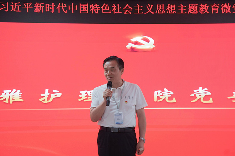 谭希培代表评委团对参赛选手讲课进行点评。他表示,参赛选手们以昂扬的姿态、动人的讲述向我们呈现了一堂堂精彩纷呈的微党课,既有理论深度,又有实践意义;既风格突出,又形式新颖,全面展示了学校师生敢于拼搏、勇于担当的新时代新风貌和积极向上的精神状态,希望大家继续以微党课为载体,讲好红色故事,以讲促学,以学促行,以行践学,让组织生活走深、走实、走心,激励广大党员踔厉奋发、砥砺前行。同时,谭希培对进一步推进主题教育微党课活动也提出了以下建议:一要主旨明确,扣紧核心;二要深入学习,不断创新;三要认真落实主题教育方案,提升主题教育质量。