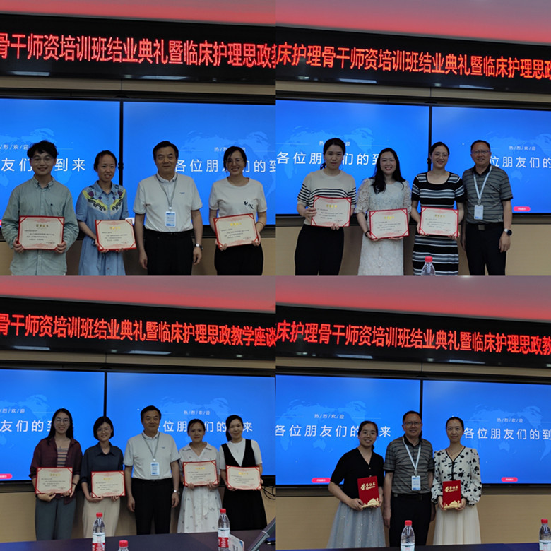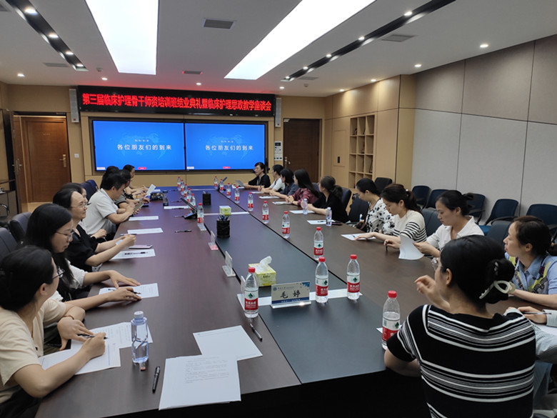 2023年6月20日下午,第三届临床护理骨干团队培训班结业典礼暨临床护理思政教学座谈会在威廉希尔中文官网502会议室举行。公司党委书记李涛、经理唐四元、副经理陈嘉、湘雅三医院护理教研室主任毛平、湘雅二医院护理教研室副主任陈琼妮、教学干事黄志芳、湘雅医院科护士长周建辉、教学干事曾玉婷、湖南省肿瘤医院教学干事李星凤、威廉希尔中文官网教授周乐山、教学办主任毛婷及十余名临床带教老师参加了此次会议。会议由陈嘉副经理主持。
