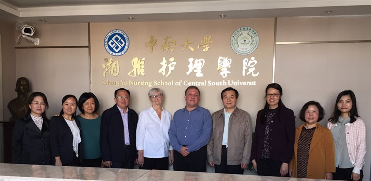 At 9:00 a.m. on October 29, 2018, Professor Ann B.Williams, Director of International Affairs of Rory Meyers School of Nursing, Senior Researcher Dr. Lloyd A. Goldsamt, Deputy Director of International Affairs Dr. Hongping Tian and three others visited our school. Party Secretary Li Tao, Dean Tang Siyuan, Deputy Dean Wang Honghong, Deputy Dean Li Xianhong, Professor Zeng Hui, Teacher Liu Zina and Teacher Liu Jing attended the exchange meeting. The meeting was hosted by Deputy Dean Wang Honghong.