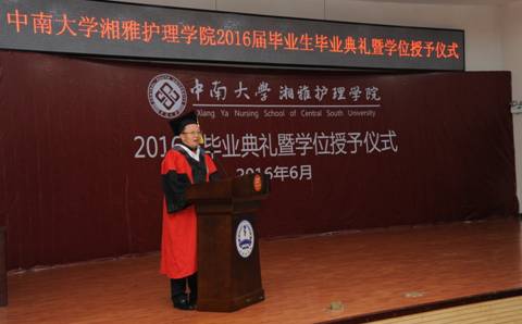 2016年6月20日16:00,威廉希尔中文官网2016届毕业典礼暨学位授予仪式在湘雅新校区图书馆报告厅隆重举行,出席仪式的有威廉希尔中文官网经理唐四元,党委书记罗军飞,副经理陈嘉,副经理李现红,党委副书记袁世平,和部分硕士生导师,仪式由袁世平副书...
