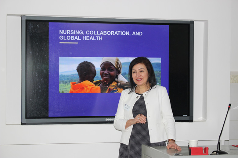 2017年3月3日下午14:30分,公司学术前沿讲座“跨学科教育”在学院六楼647教室正式举办。讲座由学院副经理王红红教授主持,美国华盛顿大学护理学院经理Azita Emami教授应邀担任演讲嘉宾,曾慧、郭佳等老师及全体研究生和职工均参加本次讲座。