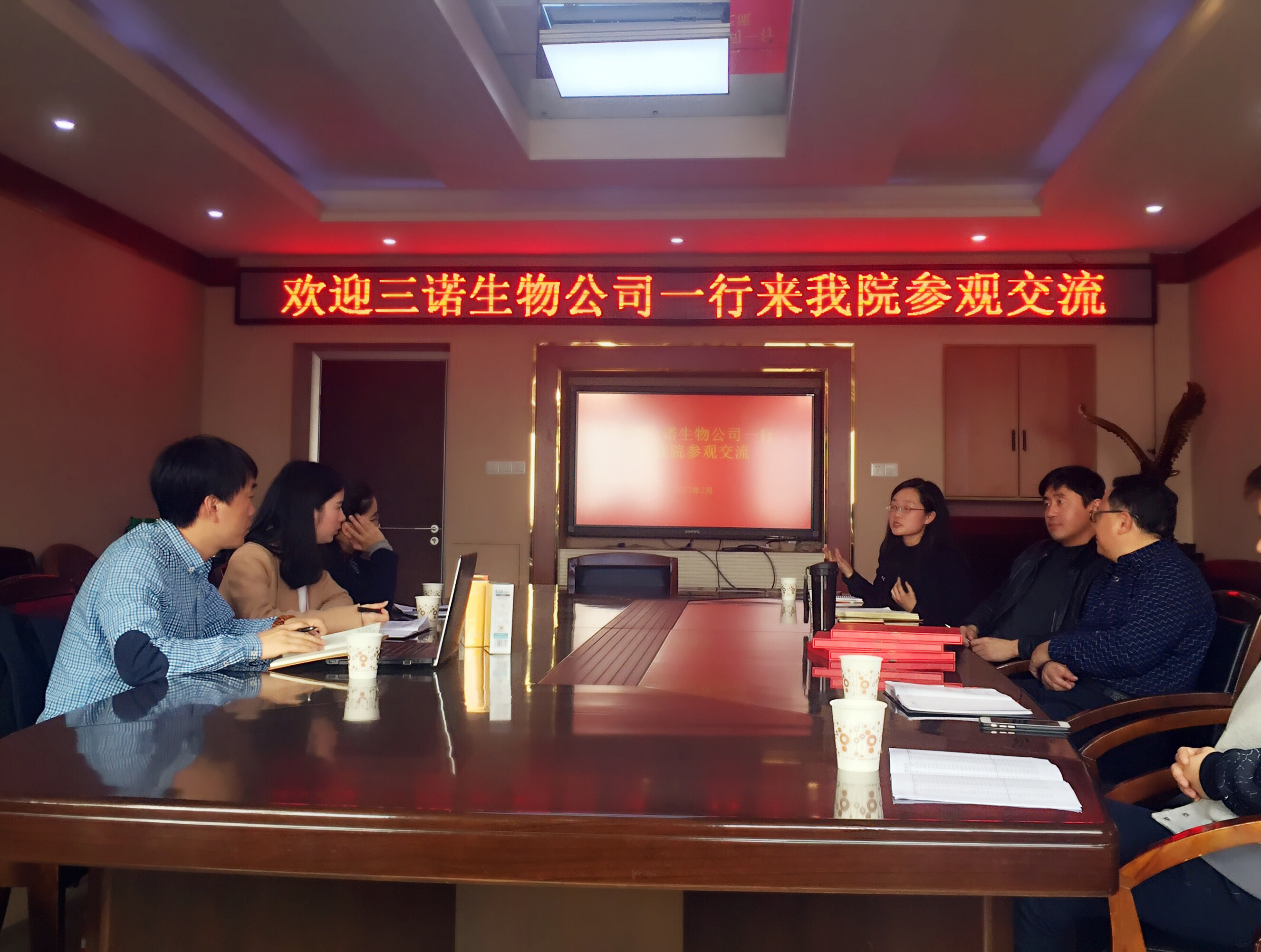 2017年2月28日下午,三诺生物传感有限公司市场部一行三人来公司交流,唐四元经理、袁世平副书记、郭佳副教授、孙玫副教授、团委书记黎梦和辅导员王馨参加了座谈。