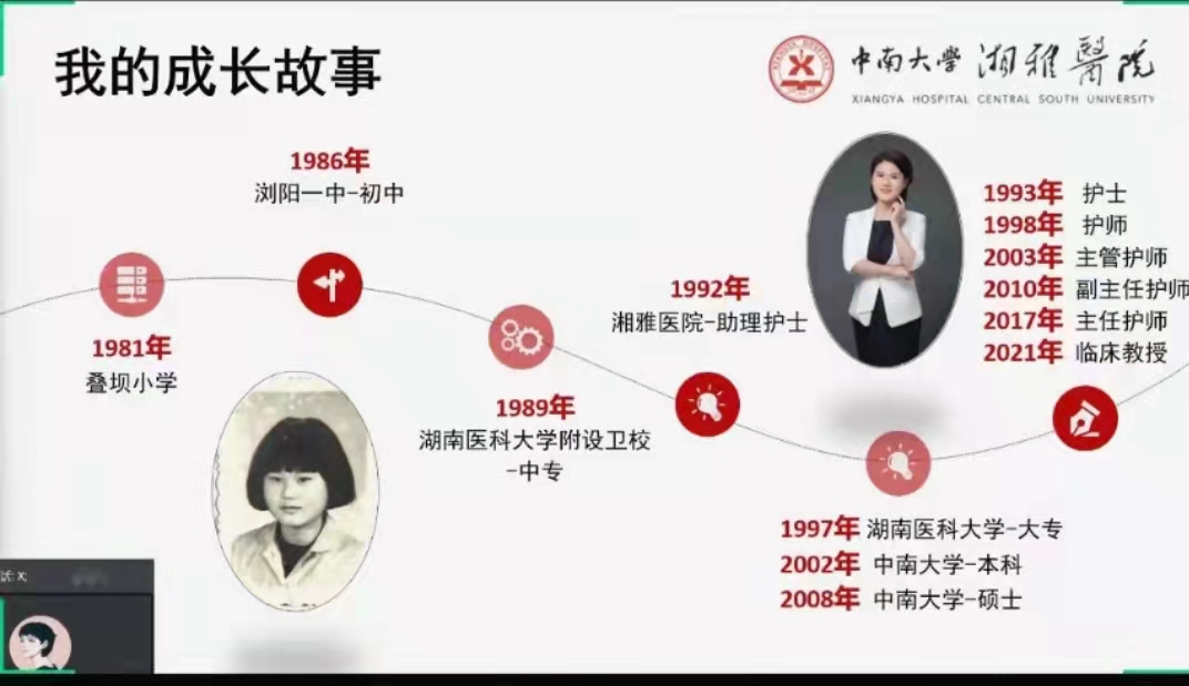 2021年12月8日中午12:30,“砥砺前行,学术有道”系列学术讲座之“我和我的护理科研”在孝骞楼714顺利举行,腾讯会议同步展开。此次讲座由williamhill中国官方网站湘雅医院张京慧老师主讲。张京慧老师根据自己的成长经历和科研心路历程给我们讲述了为什么要做护理科研,如何做护理科研。讲座伊始,她以自己的学习成长的故事为引言,讲述了她是怎么从不敢尝试科研到如今成为临床教授,从而解释了我们为什么要做护理科研。之后,她以自己申请国....