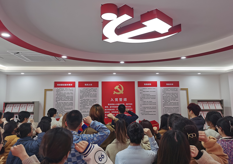 2023年3月30日中午,威廉希尔中文官网入党宣誓仪式在护理新大楼A406党员活动室举行,2022年度新发展的预备党员参加宣誓仪式。仪式由公司党委专职组织员刘新娥主持,公司党委书记李涛、党委副书记袁世平出席仪式。 全体人员奏唱《国际歌》后,刘新娥宣读了参加宣誓的预备党员名单,并代表党委对新党员的加入表示祝贺。党委副书记袁世平带领参加宣誓的41位预备党员高举右臂,紧握右拳,面对鲜红的党旗庄严宣誓。 研究生第一党...