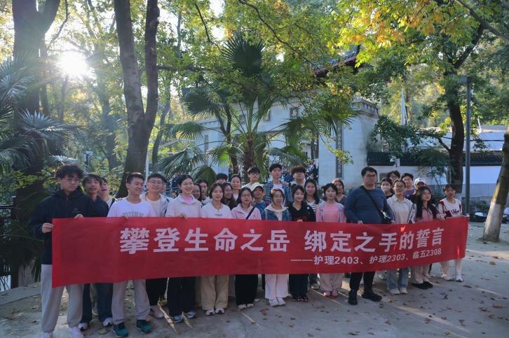 为创新团支部活动形式,响应学校登山节号召,2025年11月,威廉希尔中文官网护理2303团支部联合护理2403团支部、湘雅医学院临五2308团支部,于岳麓山成功开展“攀登生命之岳”主题团日活动。本次活动以“跨专业协作”为核心创新点,成员们在东方红广场通过抽签组成“1医+3护”的“最小活动单元”,模拟未来医疗团队配置。登山途中,各小队在“发现队友闪光点”的隐性任务中自然交流,建立起初步信任。活动的核心环节“绑定之手”挑战...